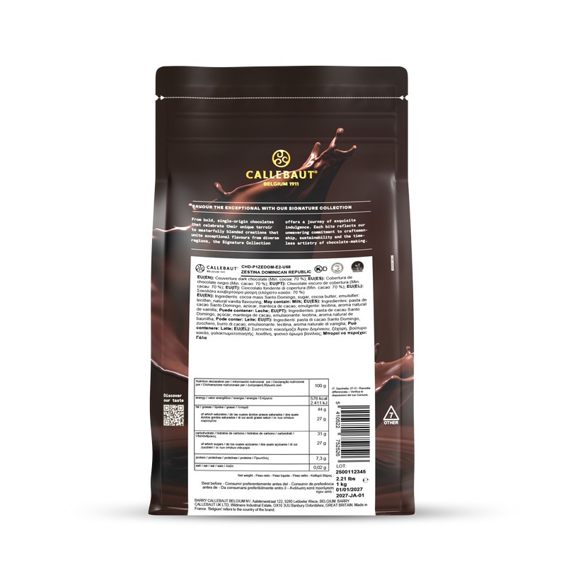 Origine шоколад Callebaut Zestina Dominican Republic темный 70%, 1 кг