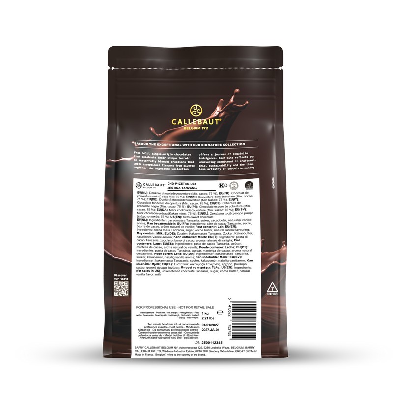 Origine шоколад Callebaut Zestina Tanzania темный 75%, 1 кг