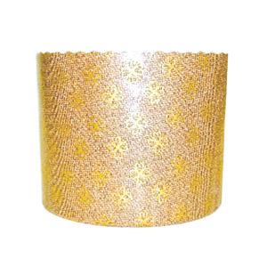 Одноразовая бумажная форма для выпечки дрожжевых изделий (куличей, панетоне и др.) и другой выпечки бежевого цвета с золотым рисунком. Диаметр 90 мм, высота 90 мм. Плотность бумаги 95 г/м2.
