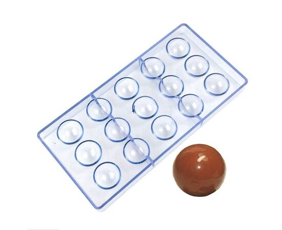 Форма поликарбонатная для шоколадных конфет и сфер. На форме 15 ячеек диаметром 32 мм.