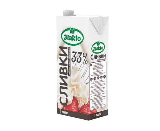 Ультрапастеризованные питьевые сливки Эlakto с массовой долей жира 33%. Идеально подходят для взбивания. В состав добавлен стабилизатор каррагинан.