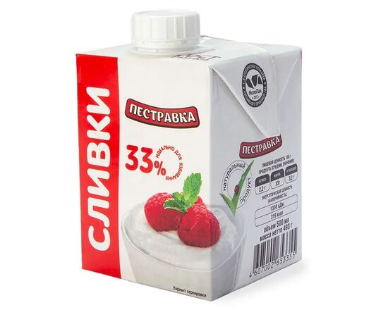 Сливки Пестравка 33%-идеальны для взбивания и приготовления десертов.