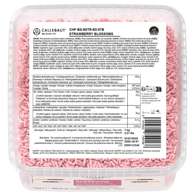 Стружка (завитки) из клубничного шоколада Callebaut, 1 кг