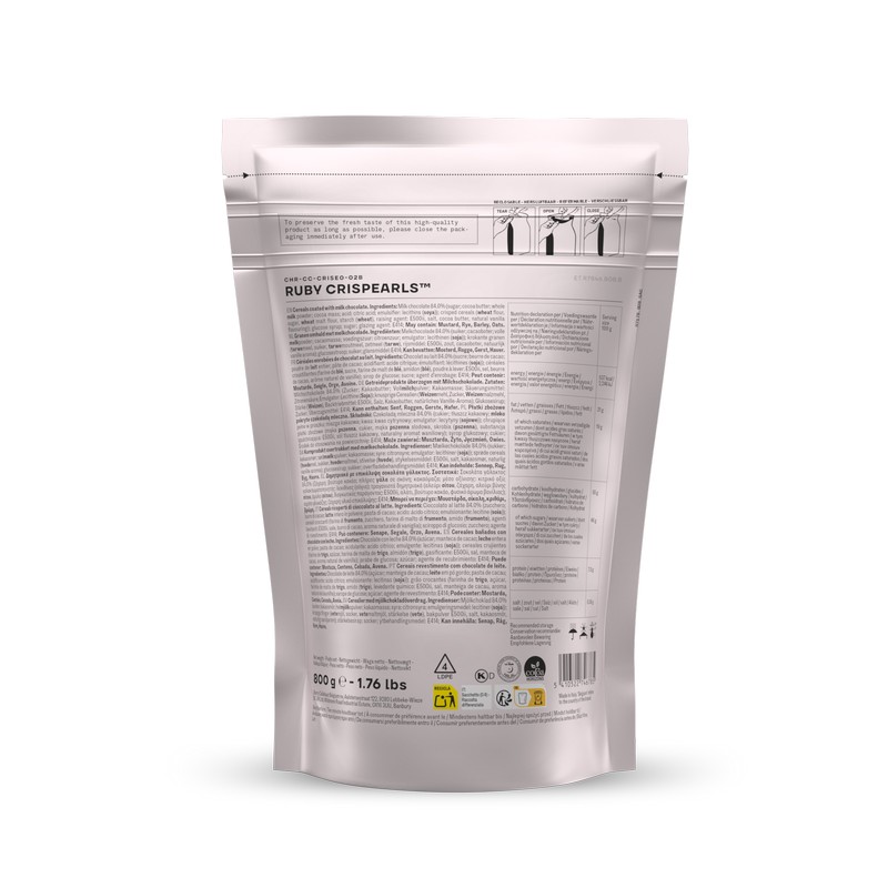 Маленькие блестящие жемчужины из рубинового шоколада Callebaut RUBY хрустящие внутри. Без красителей и искусственных ароматизаторов.