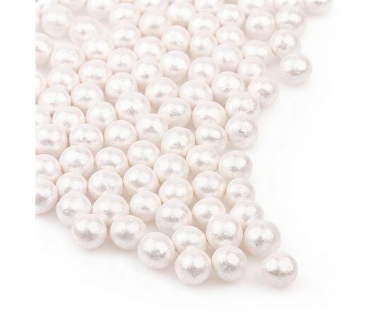Рисовые шарики в цветной кондитерской глазури с глиттером (блеском). Применяется как украшение и добавка в состав изделия. Цвет жемчужно белые. Форма сферическая, даметром 12-13 мм.