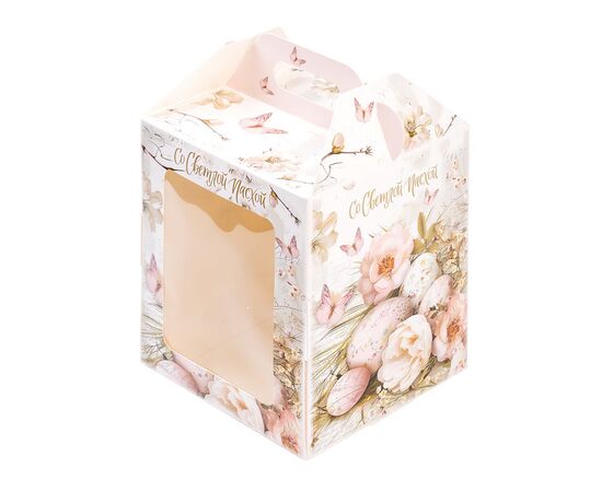 Коробка для кулича с окном (загрузка спереди), "Ретро", 15*15*18 см