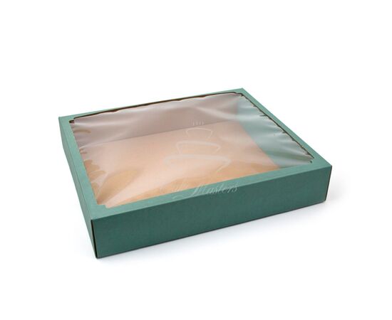 Коробка универсальная (дно+крышка) голубая с окном, 37х32х7 см, гофрокартон