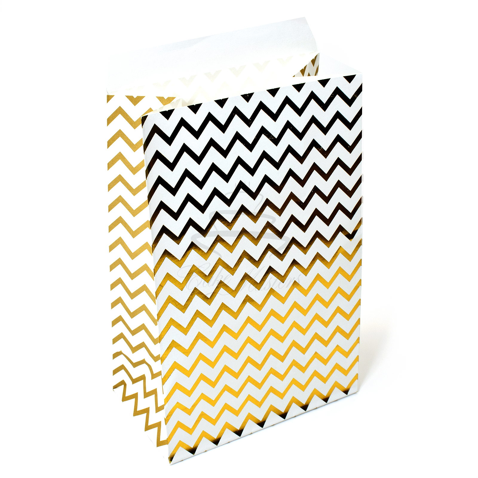 Пакет бумажный с плоским дном "зигзаг золотой", 20х13х7,5 см