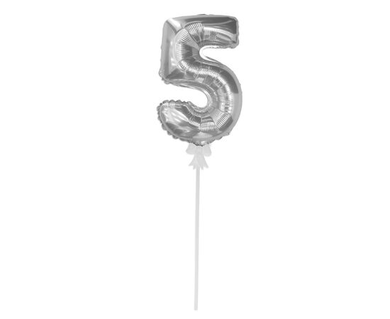 Топпер самонадувной "Цифра 5" фольгированный, серебряный