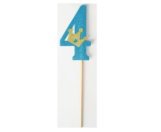 Топпер для украшения торта в виде цифры 4. Цвет синий с блестками.