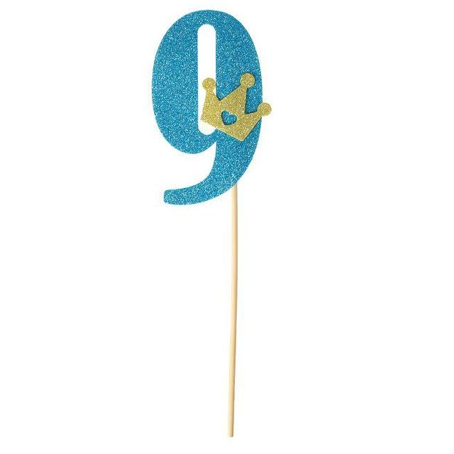 Топпер для украшения торта в виде цифры 9. Цвет синий с блестками.