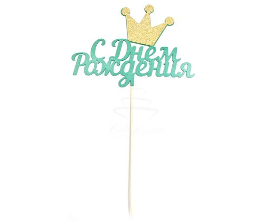 Топпер "С днем рождения (корона)" с блеском 180*130 мм, цвет в ассортименте
