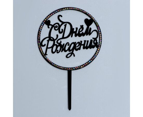 Топпер «С днём рождения», круг, со стразами, цвет чёрный