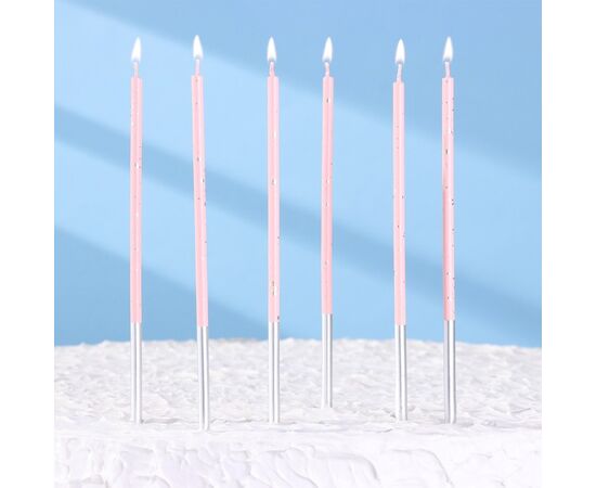 Набор свечей в торт, 6 штук "Исполнение желаний", 15 см, розовый
