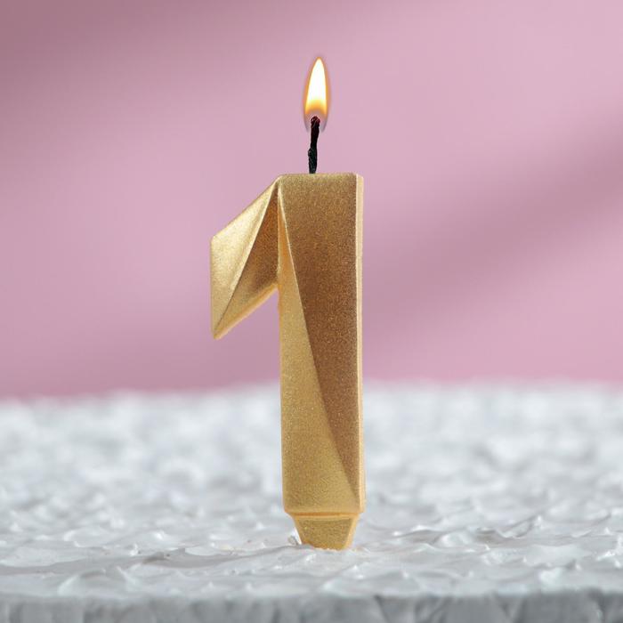 Свеча "Грань", цифра 1, золотой металлик